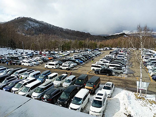 ![]() 24時間出入り可能な駐車場と 夜間でも使用できるトイレがあります ![]() スキーセンターに入らずに直接ゲレンデに出る 建物脇の通路 ![]() 早朝には幻想的な景色を望める事も |